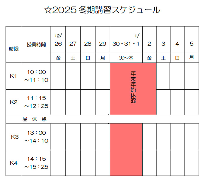 〇 講習費は1月授業料(12/29お引落し)と併せて請求させていただきます。